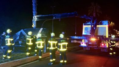 Bomberos retiran un coche accidentado en la avenida Europa de El Puerto sin ocupantes en su interior