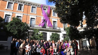 Un gran lazo morado en la Biblioteca de Jerez reivindica el compromiso con el fin de la violencia machista