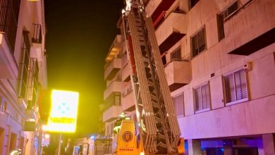 Los bomberos actúan para sanear una fachada con riesgo de desprendimiento en Jerez