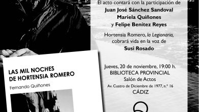 La Biblioteca Provincial de Cádiz acoge la presentación de la nueva edición de Las mil noches de Hortensia Romero de Fernando Quiñones