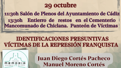 El Ayuntamiento de Cádiz acogerá la entrega a sus familias de los restos identificados de dos víctimas del golpe de Estado de 1936