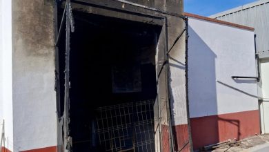 Un operario atendido por inhalación de humo en un incendio en una nave industrial junto a Montesierra, en Jerez