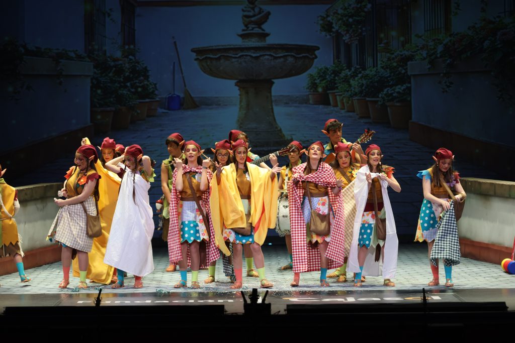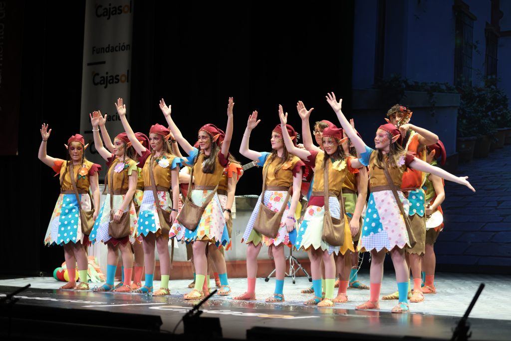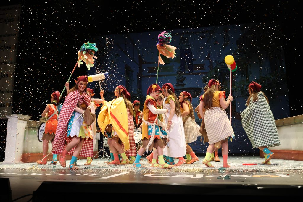 El popurrí cerró la actuación retomando el universo doméstico y carnavalesco del tipo, con escenas que evocaron patios, ventanas abiertas y juegos compartidos. La narración mantuvo el hilo de la travesura como metáfora de la infancia y del propio Carnaval vivido desde dentro, reforzando la idea de despedida sin caer en un tono dramático, sino desde la naturalidad y la continuidad hacia la siguiente etapa.