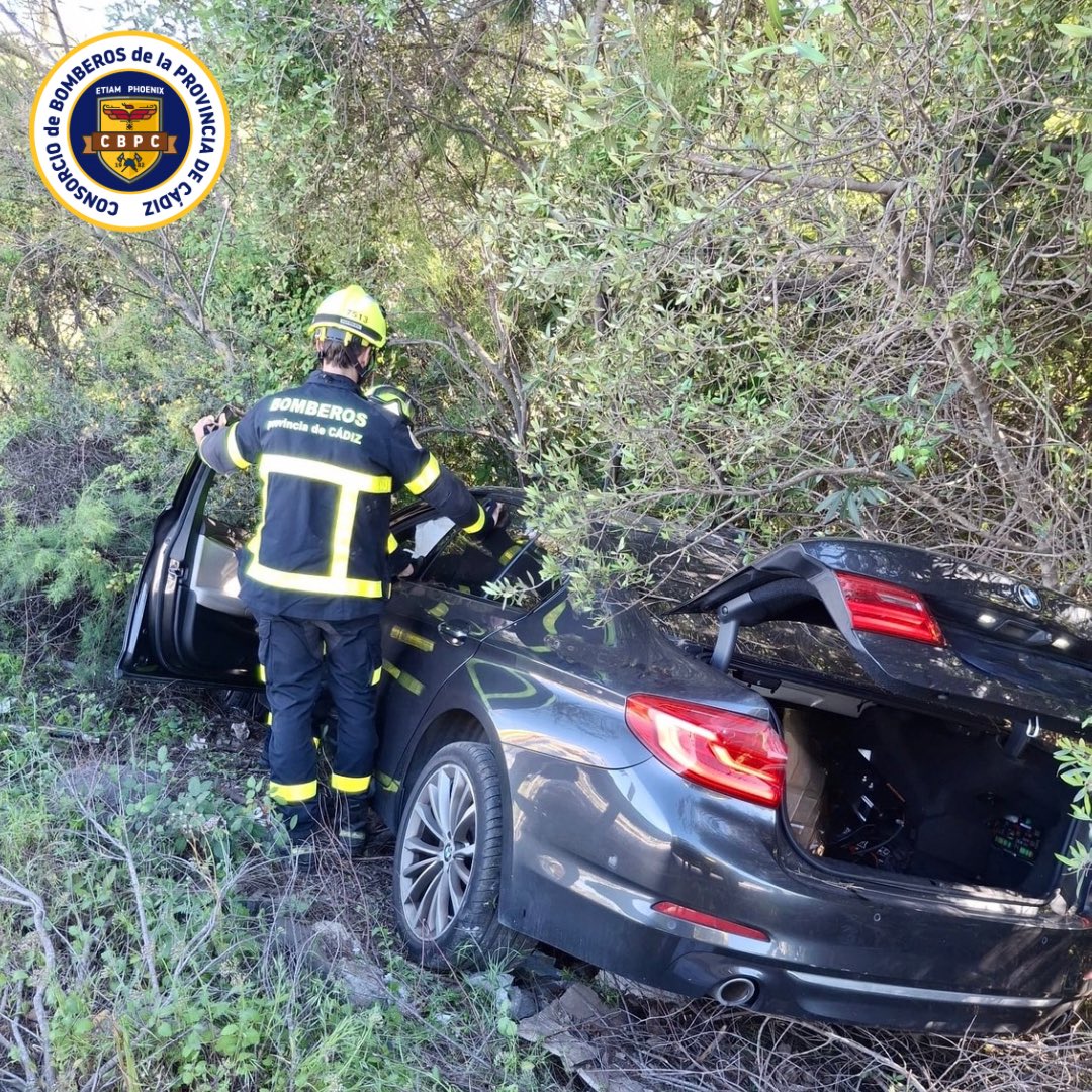 Un accidente en la A-381 en Los Barrios obligó a intervenir este jueves, 17 de abril, a efectivos del Consorcio de Bomberos de la Provincia de Cádiz (CBPC), tras la salida de vía de un turismo en el kilómetro 83 de esta carretera.