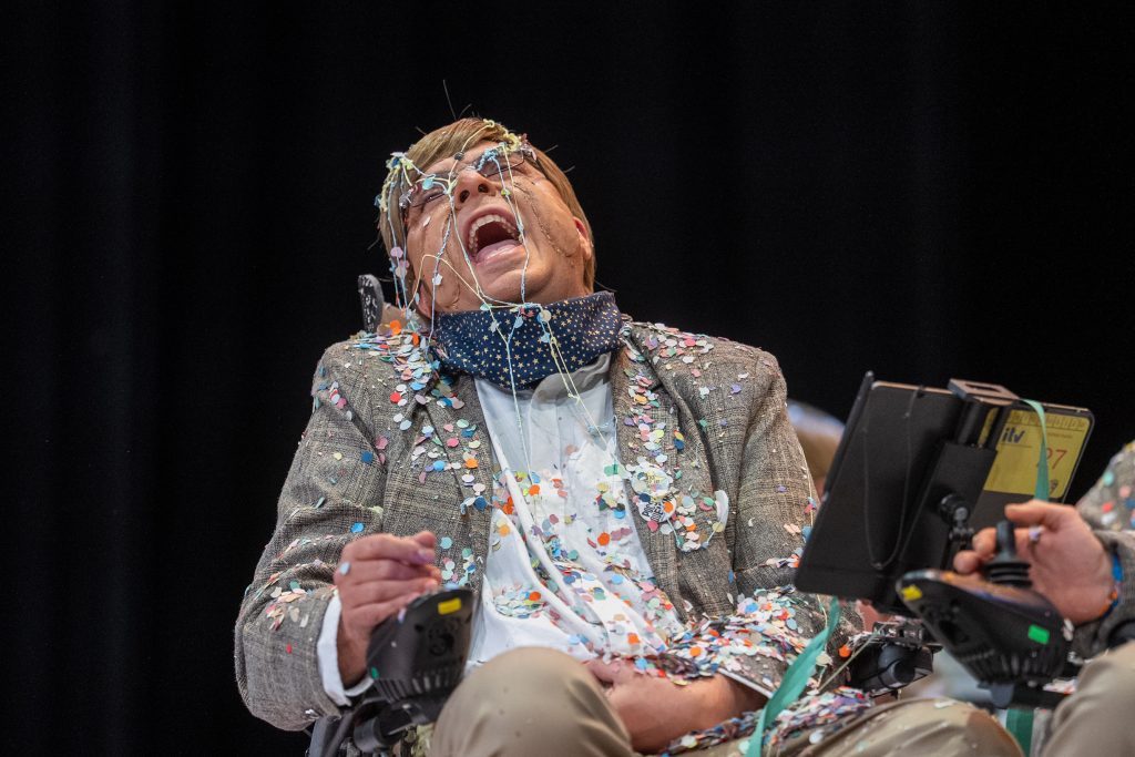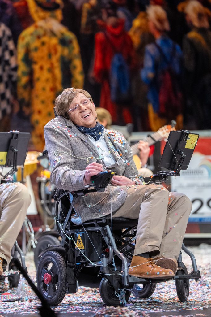 La presentación mantiene su capacidad para conectar con el público. El arranque vuelve a apoyarse en la inteligencia del personaje y en su contraste con el entorno, utilizando el humor desde la discapacidad sin edulcorarla ni convertirla en simple recurso efectista. El tono es ligero, pero deja claro desde el inicio que el repertorio va más allá de la parodia y que el mensaje sigue siendo parte central de la propuesta.