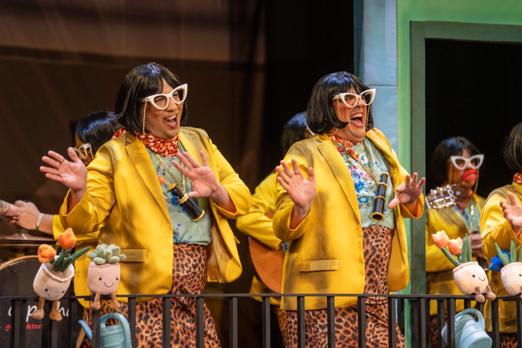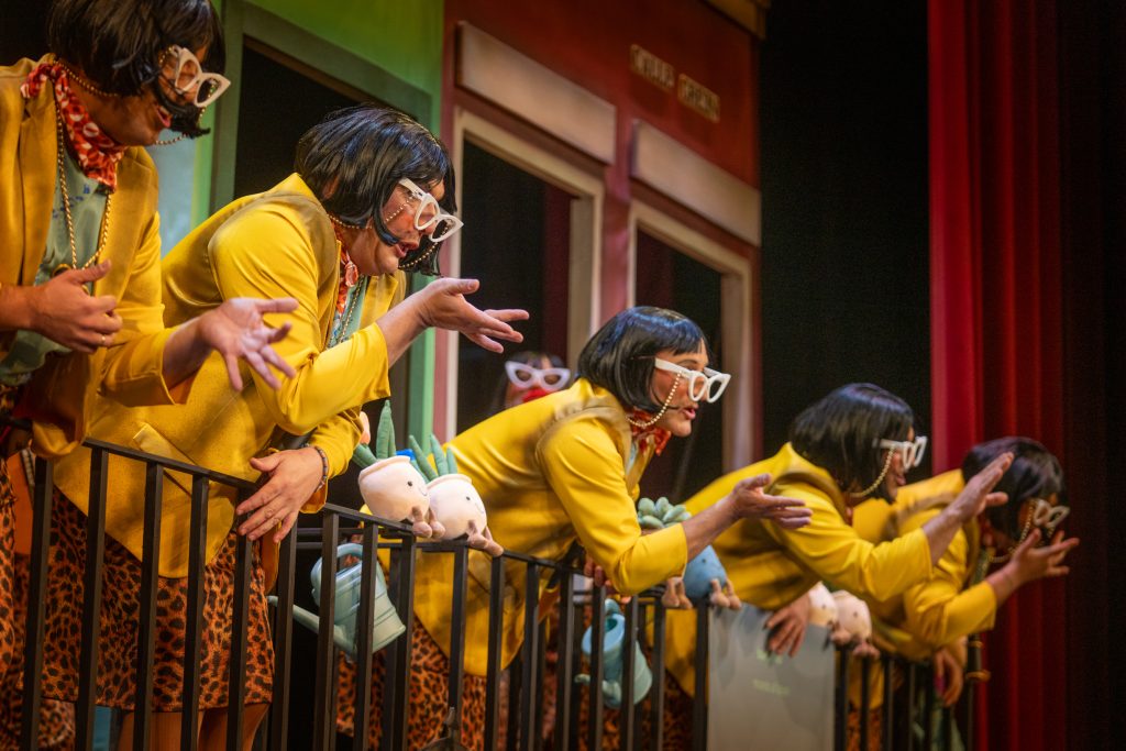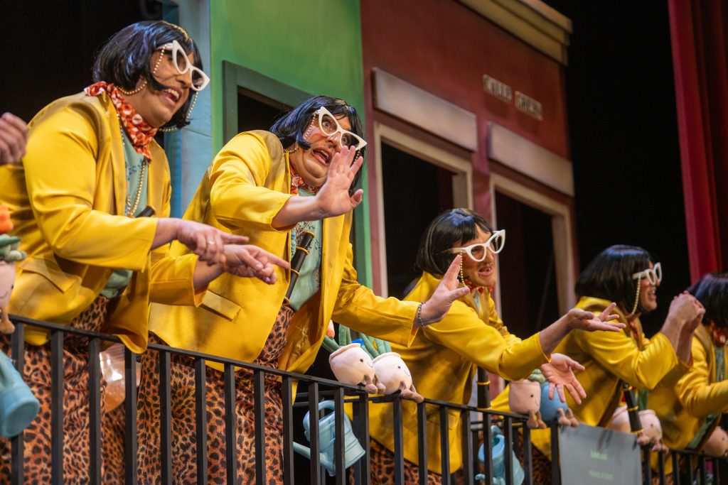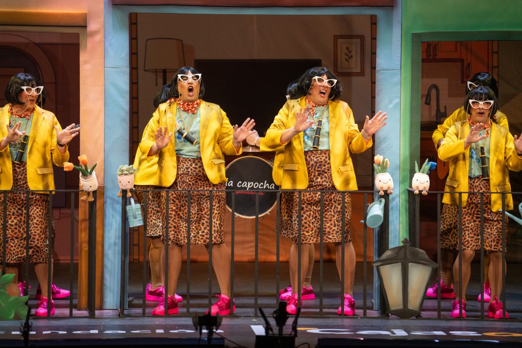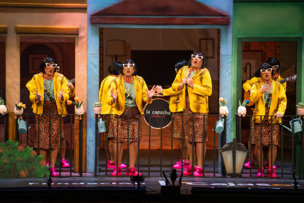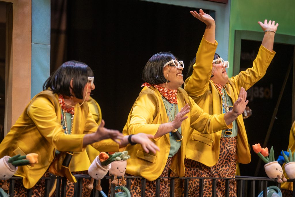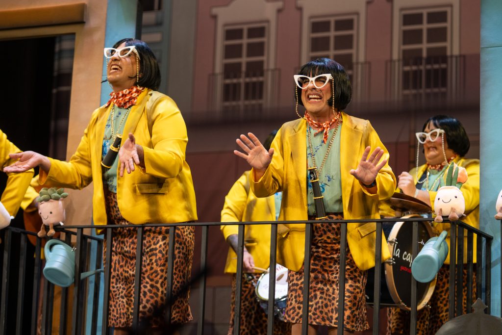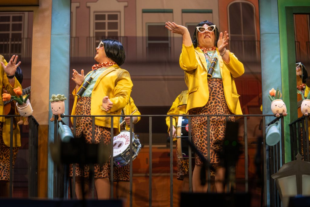 La presentación arrancó con música reconocible —la de ‘Los muñecos’— y con las componentes apostadas en la baranda del balcón, catalejo en mano, listas para criticar todo lo que pasase por delante. El planteamiento era claro: la protagonista “Chari” siempre tiene razón y nunca puede con nada. Sin embargo, el arranque no generó risa ni sorpresa y la definición del tipo tardó en completarse. Burgal lo resumió con precisión: “ni bonito ni gracioso”.